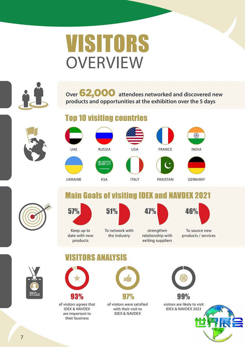 作为国防行业的国际旗舰活动,IDEX将提供与全球业界领袖、政策制定者及决策者广泛联络的机会,并可接触数以千计的主要承包商、设备制造商及国际代表团。IDEX内容涵盖国际防务会议(IDC)、IDEX与NAVDEX启动区、高层圆桌会议、创新展示区及IDEX专题研讨。IDEX与NAVDEX已成为全球国防与安全领域的关键交流中心。