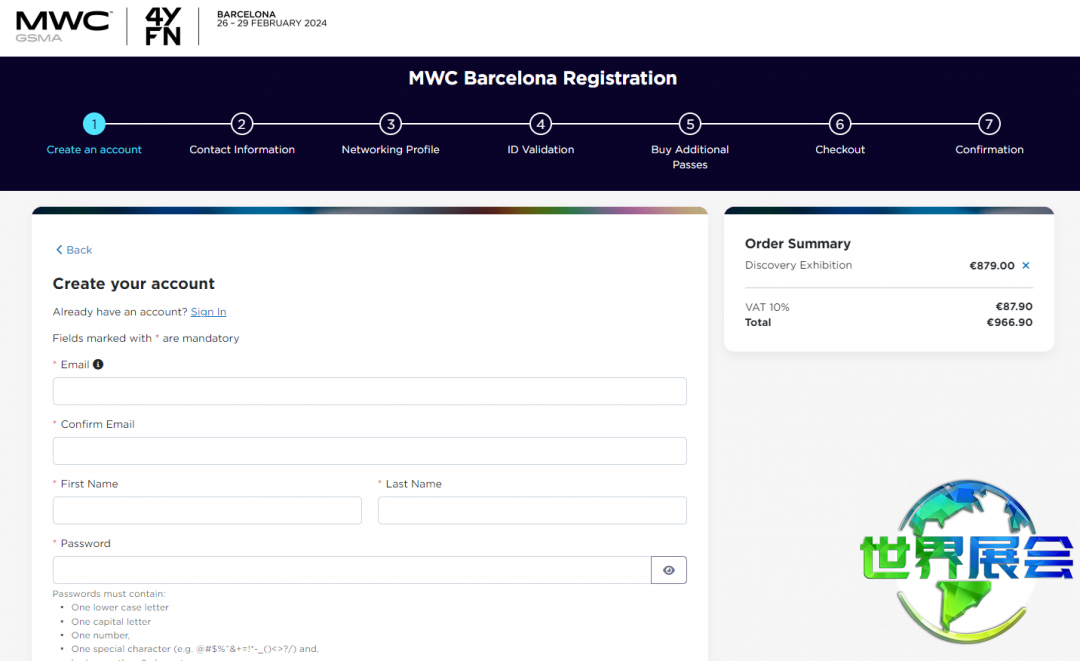 1. 登录西班牙巴塞罗那世界移动通信大会官网或中欧世界展会网的展会专题页。