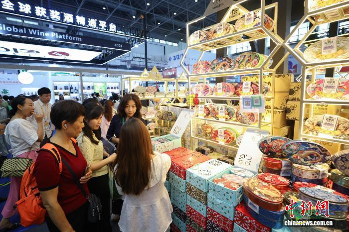 4月15日,第六届中国国际消费品博览会正在海南海口举行,图为参观者在马来西亚精品馆选购曲奇饼干。 杨郁然 摄