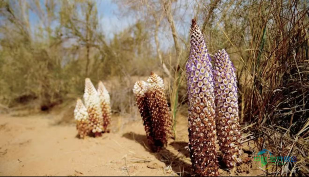 沿着内蒙古自治区315省道一路西行,绵延至天际的沙漠中,忽然出现一片由梭梭树构成的绿洲。这便是东阿阿胶全国现代生态沙产业示范基地。在这里,每株梭梭树下都藏着秘密——“沙漠人参”肉苁蓉,正在沙土下悄然生长。