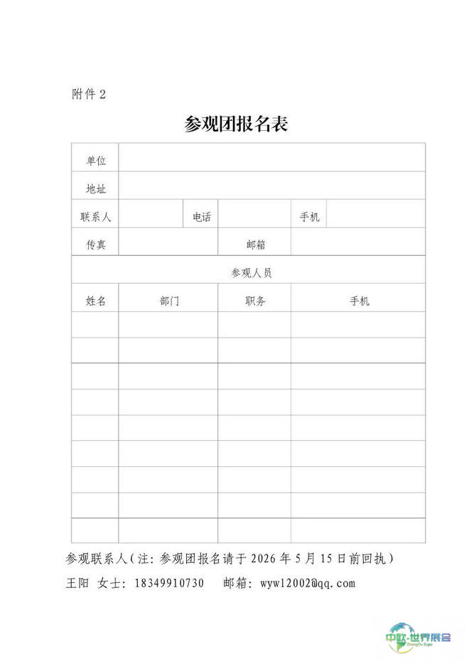 (一)团体报名。有意组织团体参观的单位,请于5月15日前填写参观团报名表(见附件2)并发送至指定联系人。