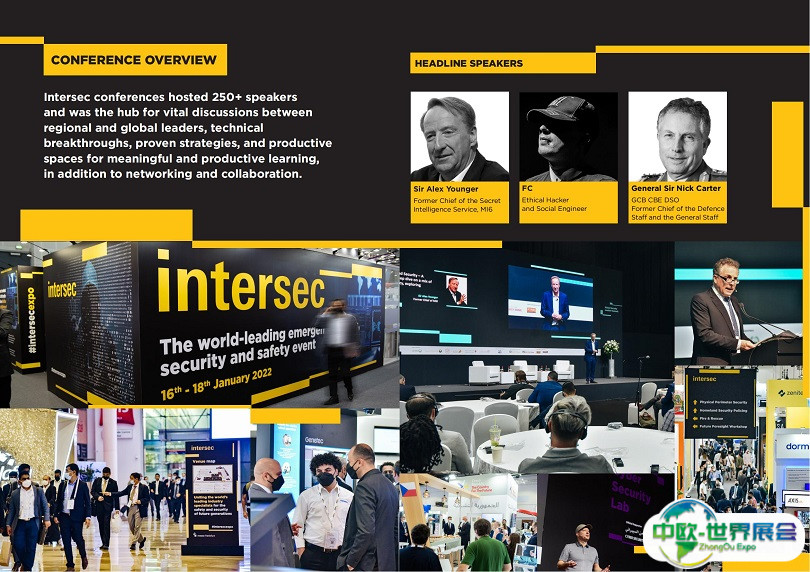 中东迪拜安防及消防展览会(Intersec DUBAI)将有超过1235家参展商分布在12个展厅,展示5个关键产品和服务组以及8个内容专题,涉及国土安全、网络和商业安全、安全与健康以及消防与救援。见证领先行业品牌的最新解决方案,与专家、政府官员和公司联系,探索安全领域的最新创新。